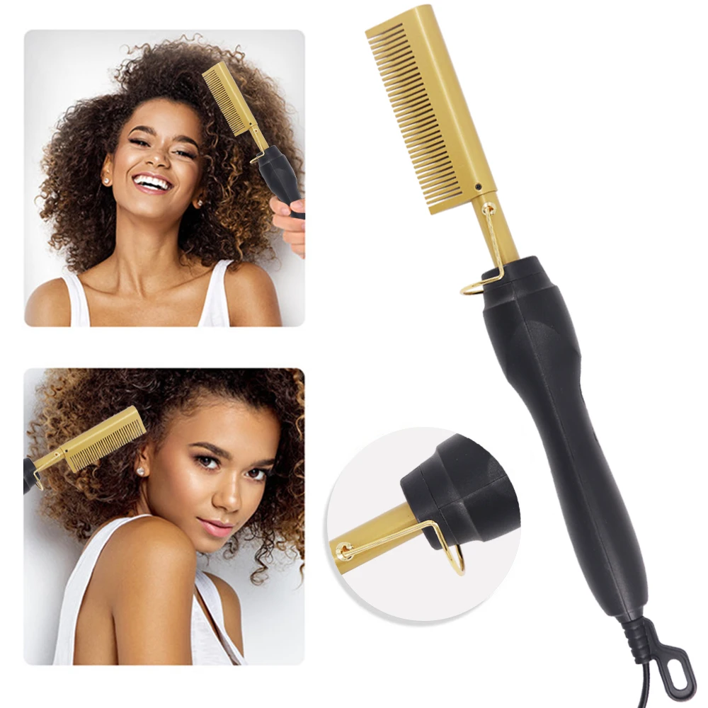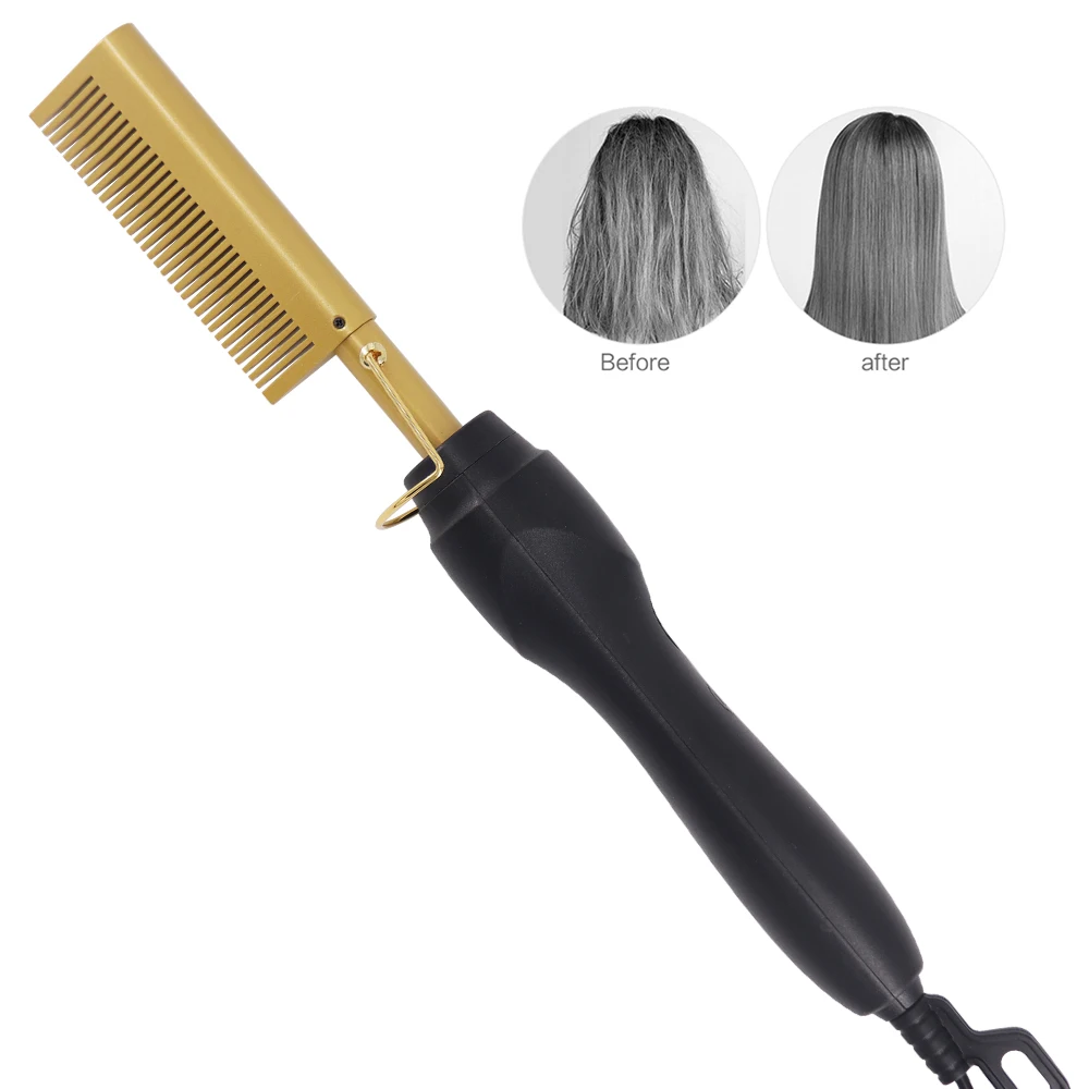 Hot Heating Comb Flat Hair Straightener Brush Hair Straightener Straight Hair Styler Curling Iron
