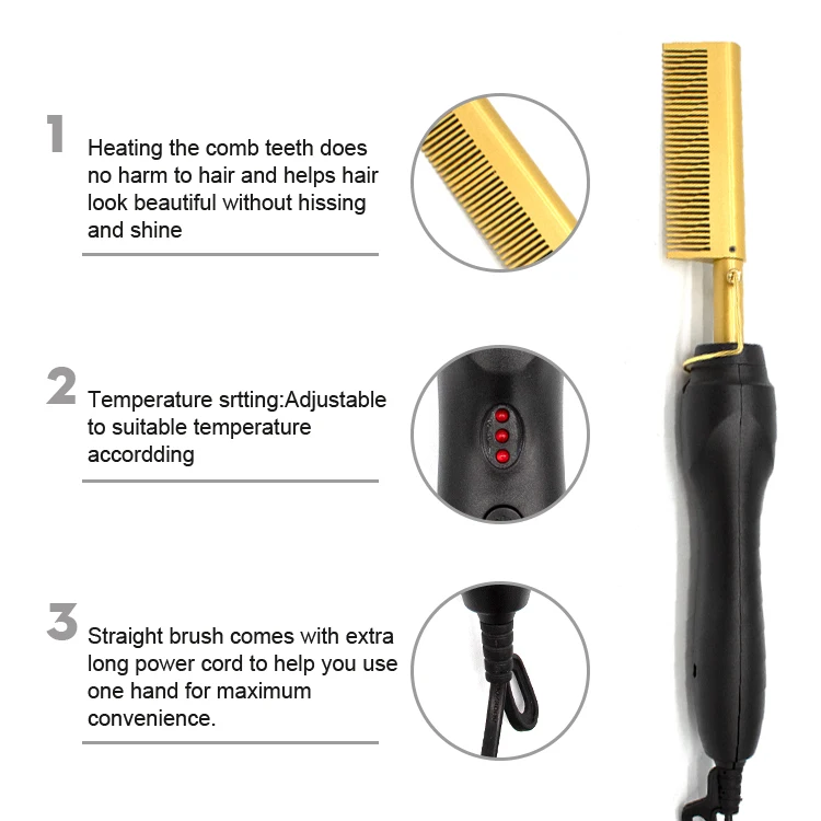 hot comb can not only help women straighten their hair but also help men straighten their beards. It can be used for parties, dates, travels, homes and salons. Perfect gift for Birthday, Valentine's Day and Christmas. If you have any questions, please feel free to contact us, we will provide you with a satisfactory solution.